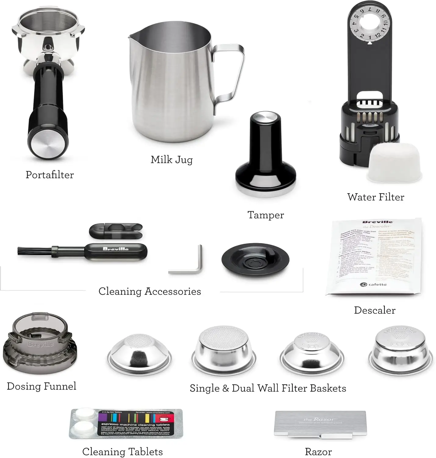 Breville also provides dedicated cleaning tablets (model dependent) for group head cleaning.