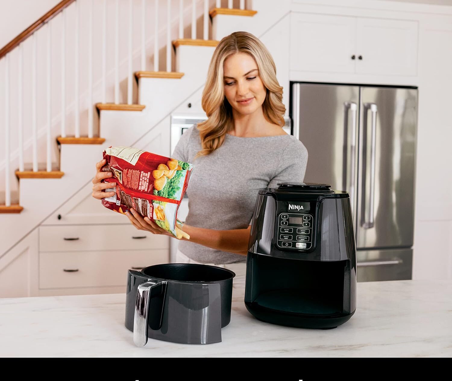 For the smaller “single basket” models, technical testing of the Ninja Air Fryer (4-quart capacity) found that size is “ideal for singles, couples or anyone with limited counter space.”